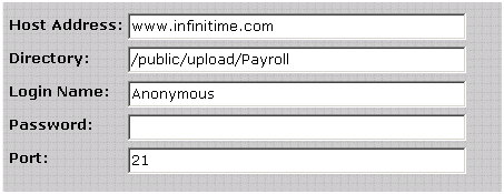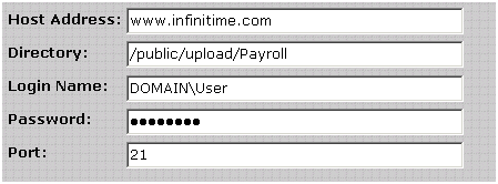 If ‘Send File Via FTP’ is checked and no email recipients are defined, the Final Payroll Export File will be Transferred to the specified FTP Destination from the InfiniTime Temp Folder and will not be placed in the output directory. The Final Payroll Export file will be deleted from the Temp Folder once the FTP Transfer is completed.