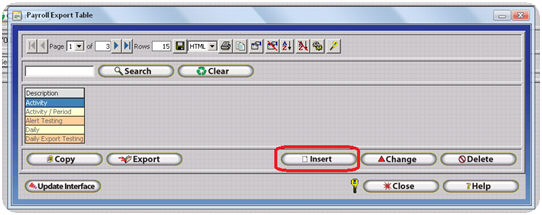 · Click Insert on the Payroll Export Table to Open the Payroll Export Update Form.